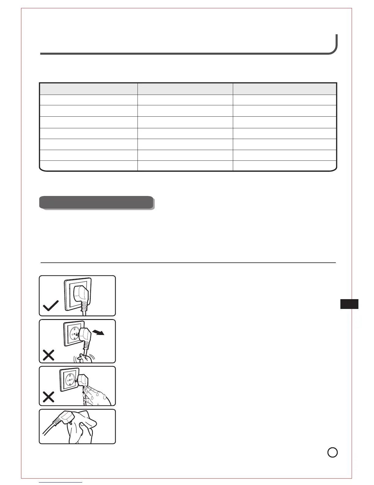 ● Ziehen Sie nicht am Kabel, um den Netzstecker aus der Steckdose zu ziehen.