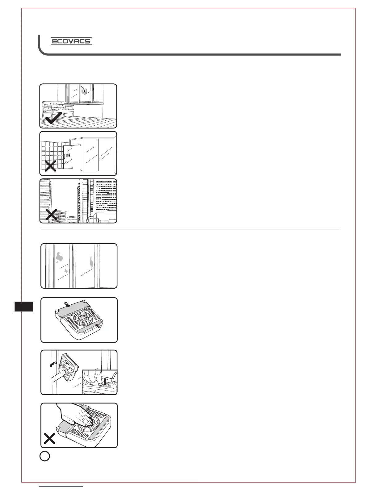 ● Der WINBOT darf NICHT für die Entfernung von Flecken wie z. B. Farbe, Klebstoff