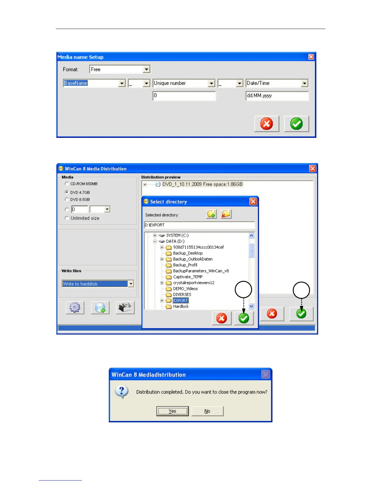 again in the dialogue WinCan8 Media Distribution. Also click on the green button in this win-