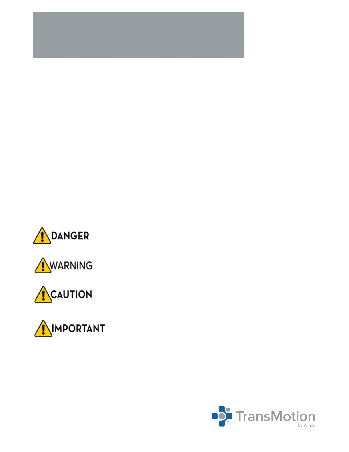 TransMotion by Winco product. Read this document thoroughly before using the equipment or performing service