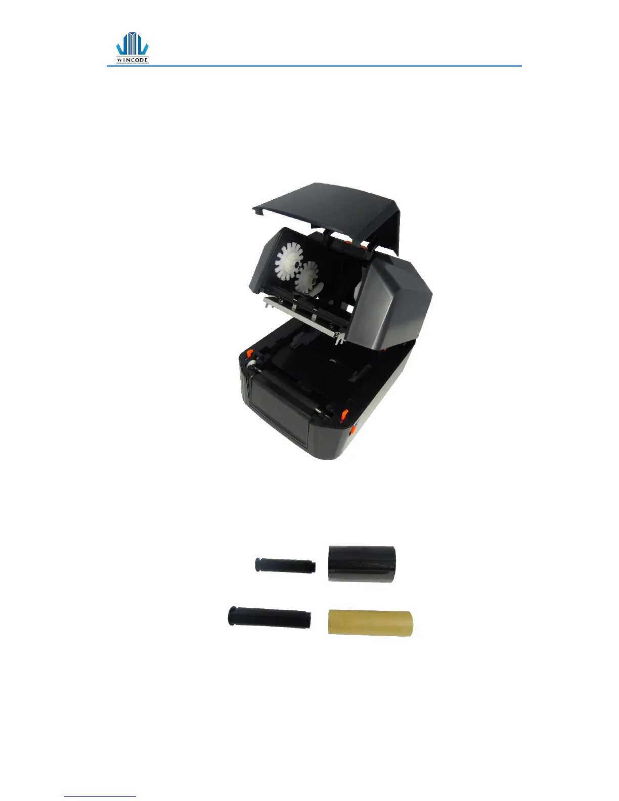 Open the ribbon cover and top cover; Install an empty paper core onto the