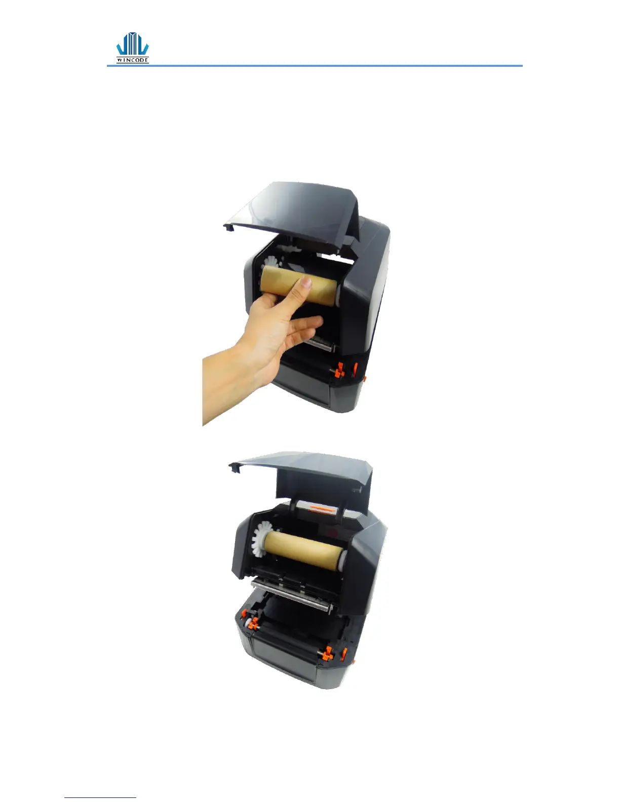 3) Load the right side of paper core first into the ribbon take-up mechanism.