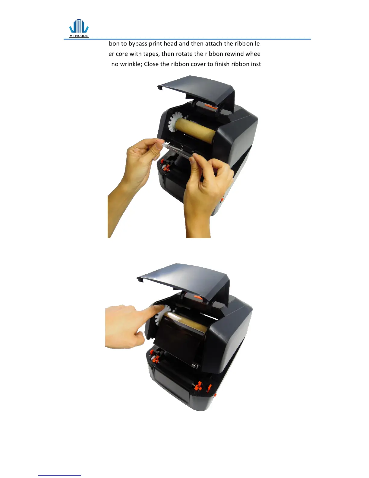 surface has no wrinkle; Close the ribbon cover to finish ribbon installation.