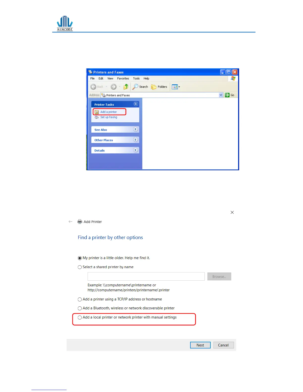 1) Follow the step above, select “The printer that I want isn’t listed” > “Add a