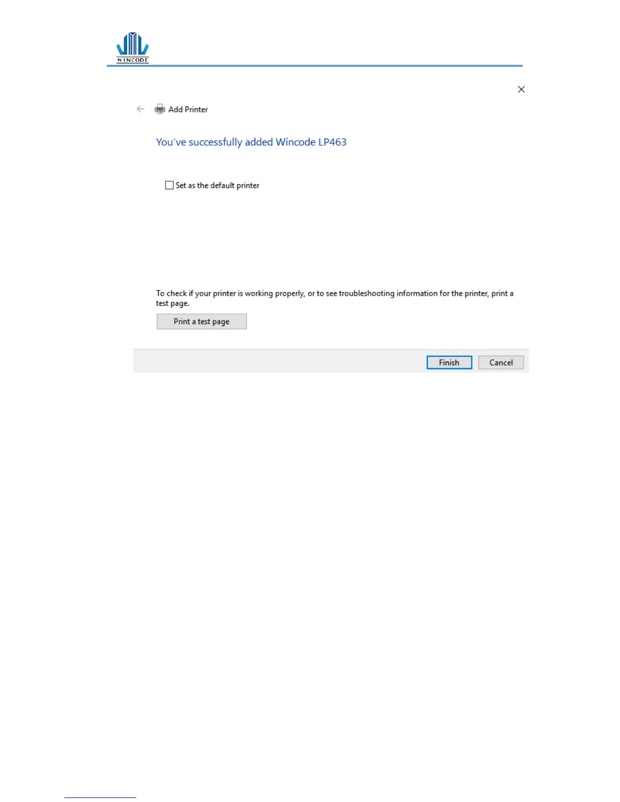 9) The user may select Set as the default printer, click “Finish”.