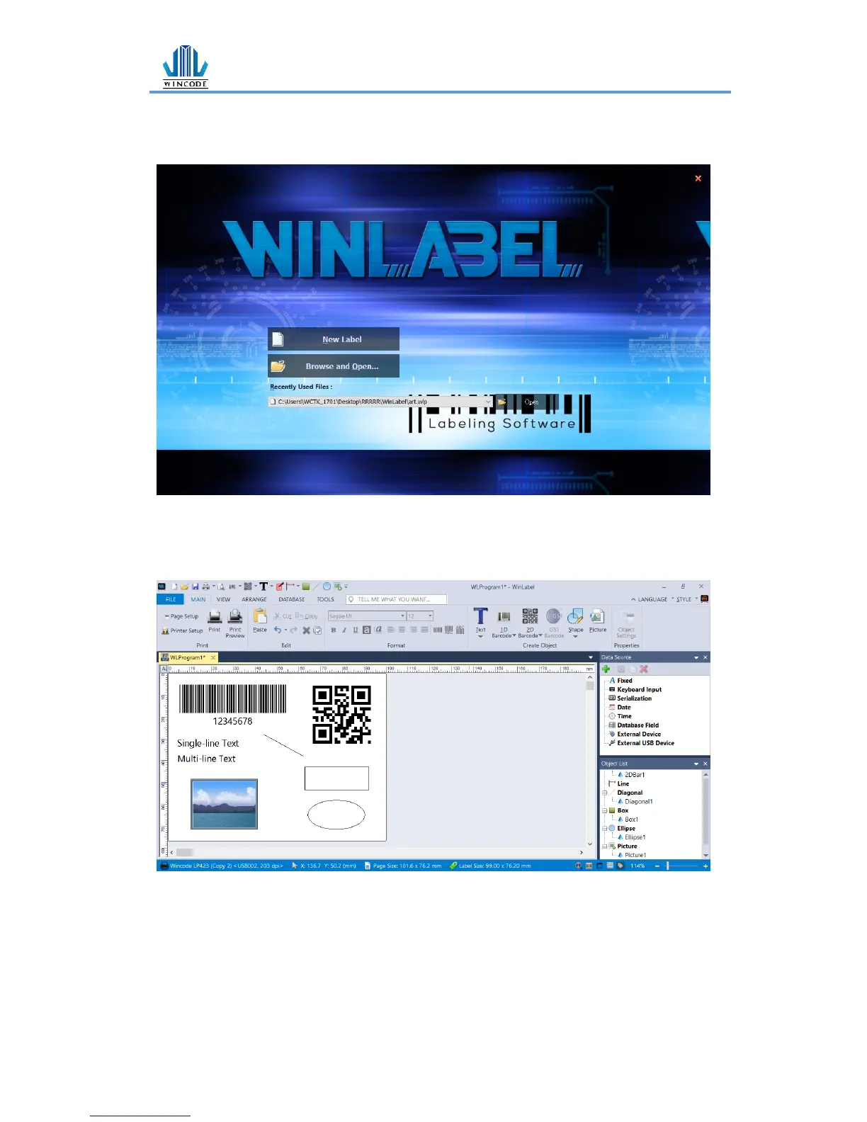 WINCODE C342 - WinLabel Label Design Interface