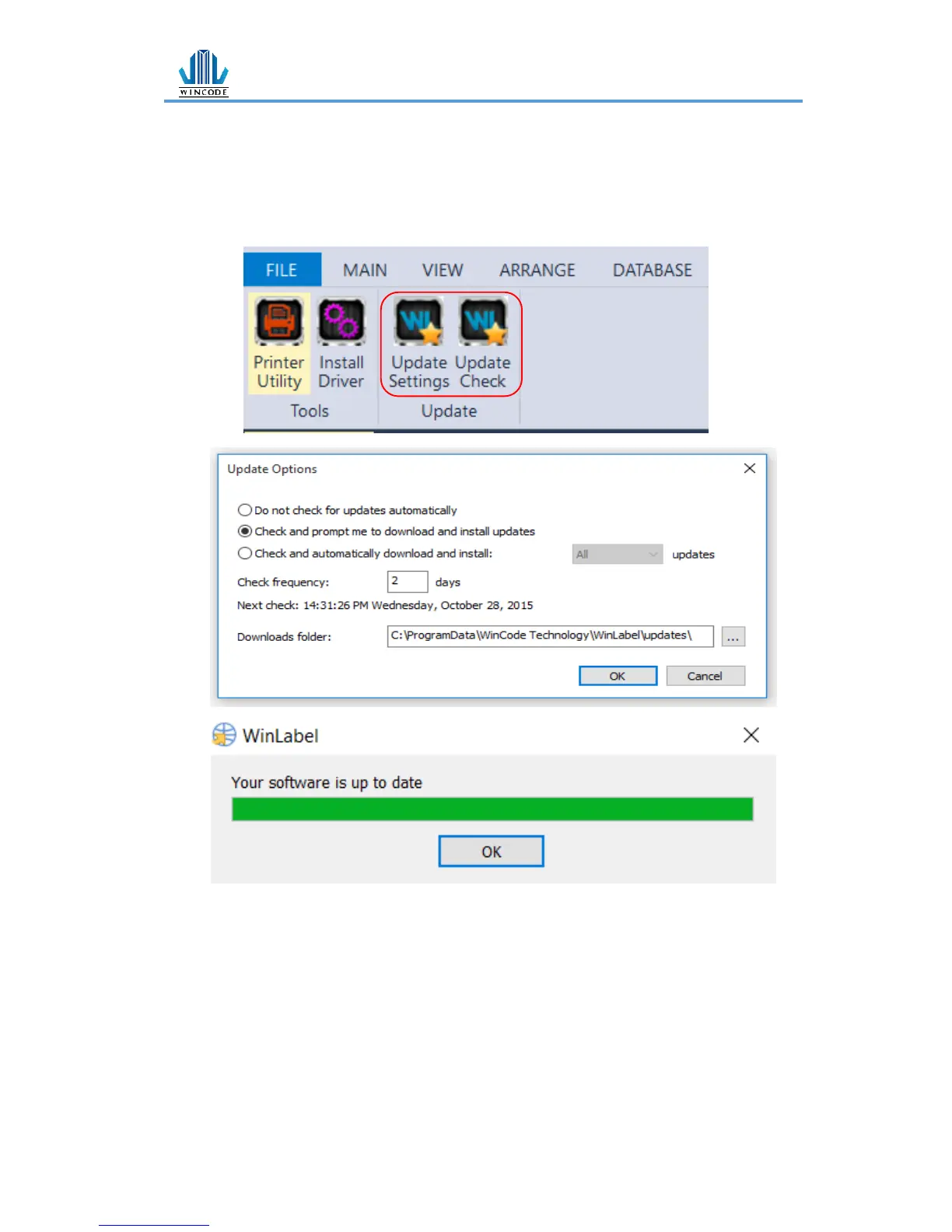 After entering to the WinLabel program, click the “Check for Updateicon in the