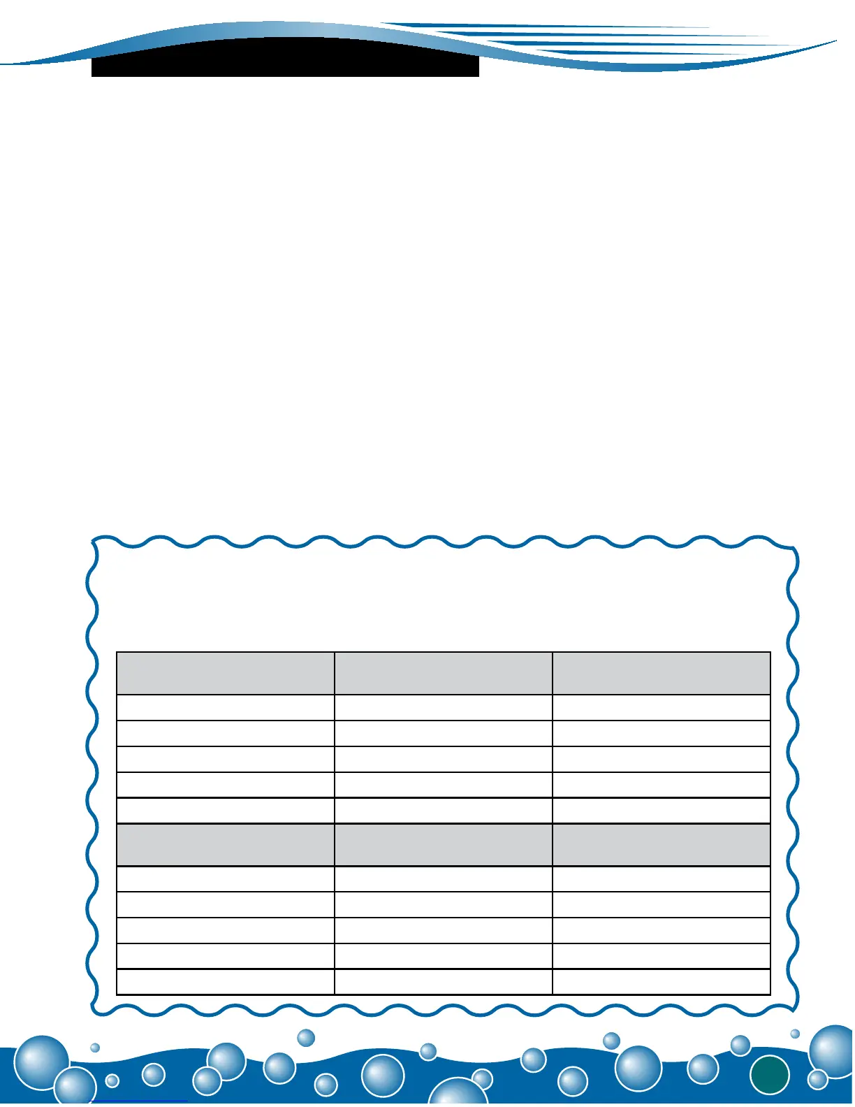 increaser” as needed. Use the chart below for gallons and the chart on the chemical bottle for the dosage