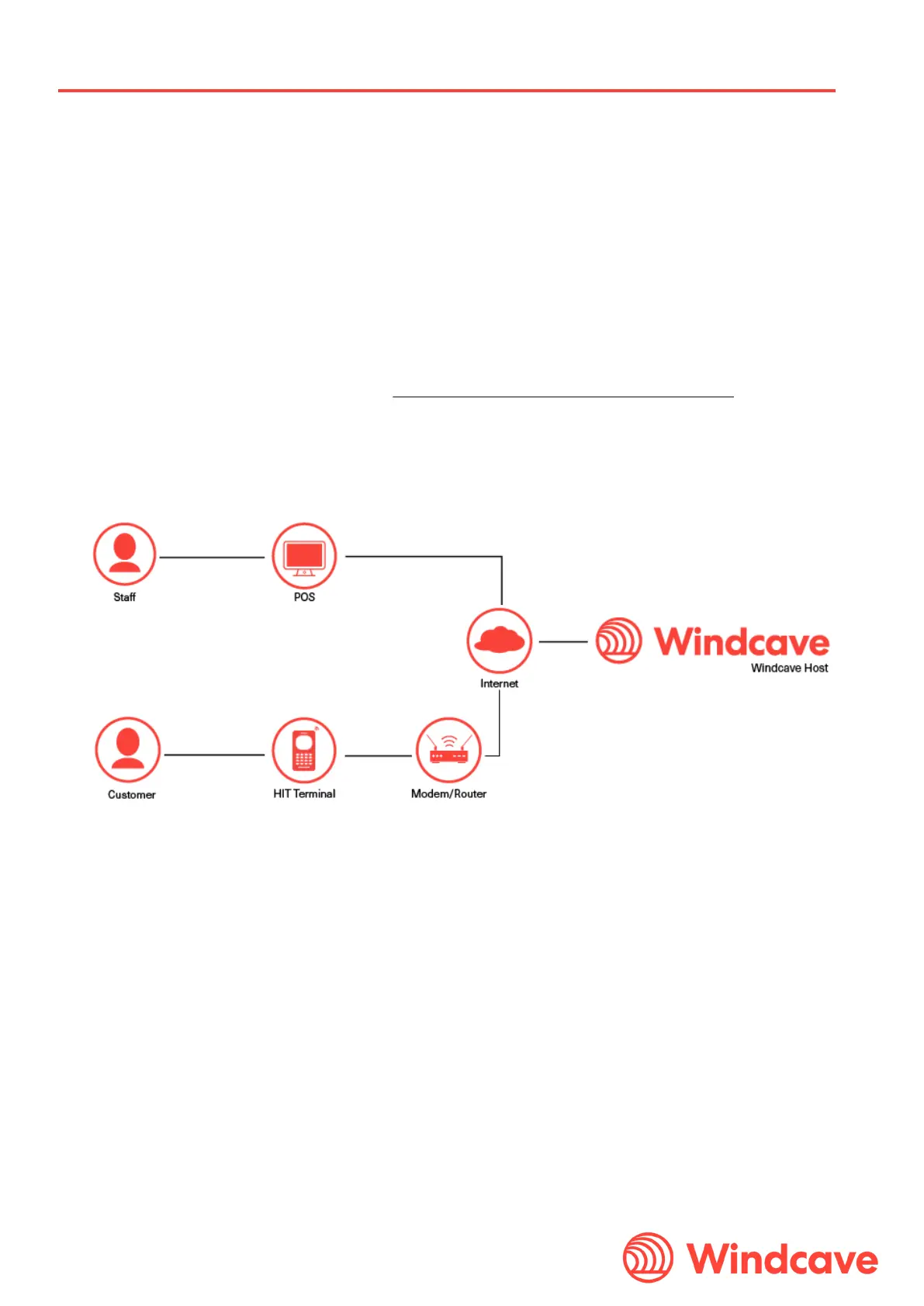 Windcave terminal. All required software is on the Windcave Terminal and Host. All messages are sent online via the