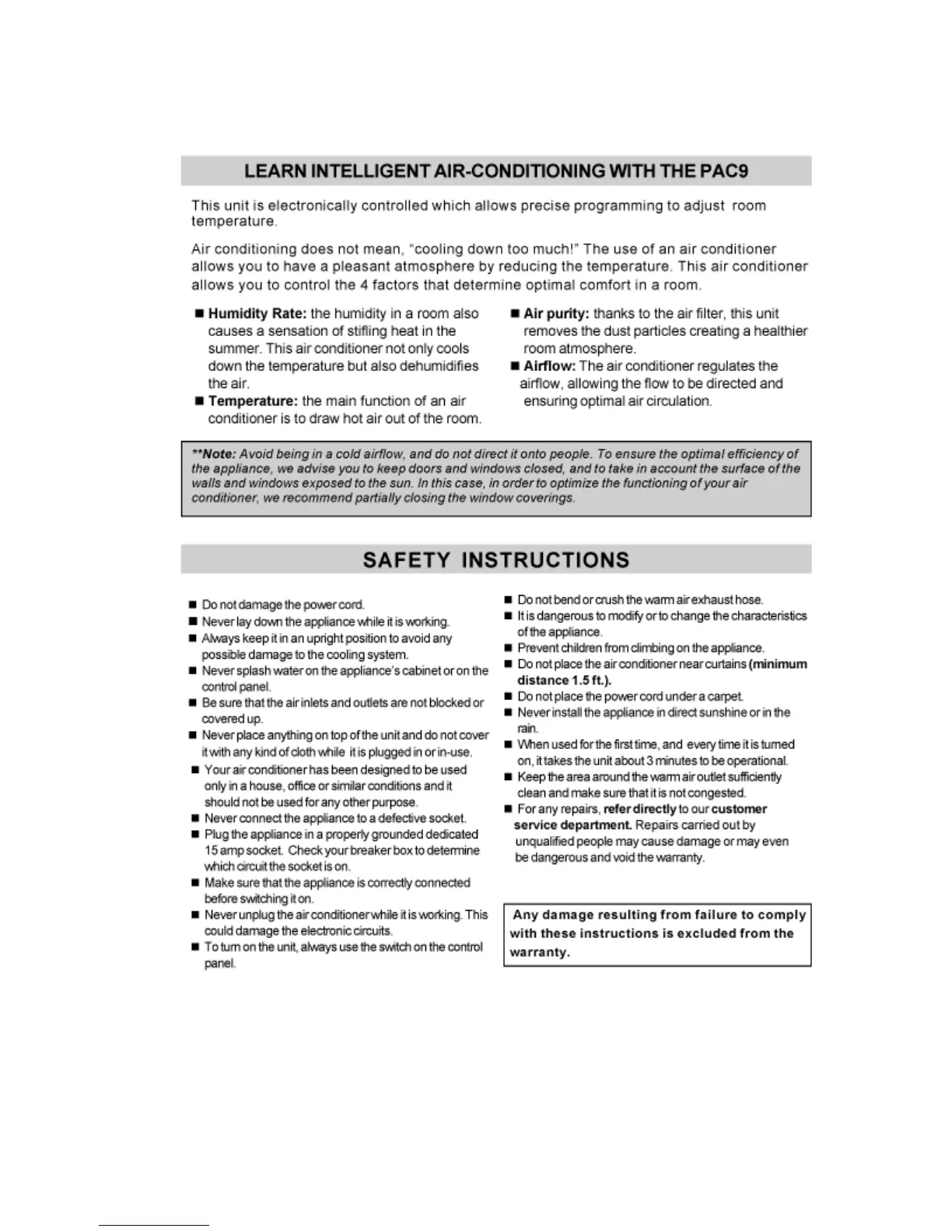 Windchaser PAC9 - LEARN INTELLIGENT AIR-CONDITIONING; SAFETY INSTRUCTIONS