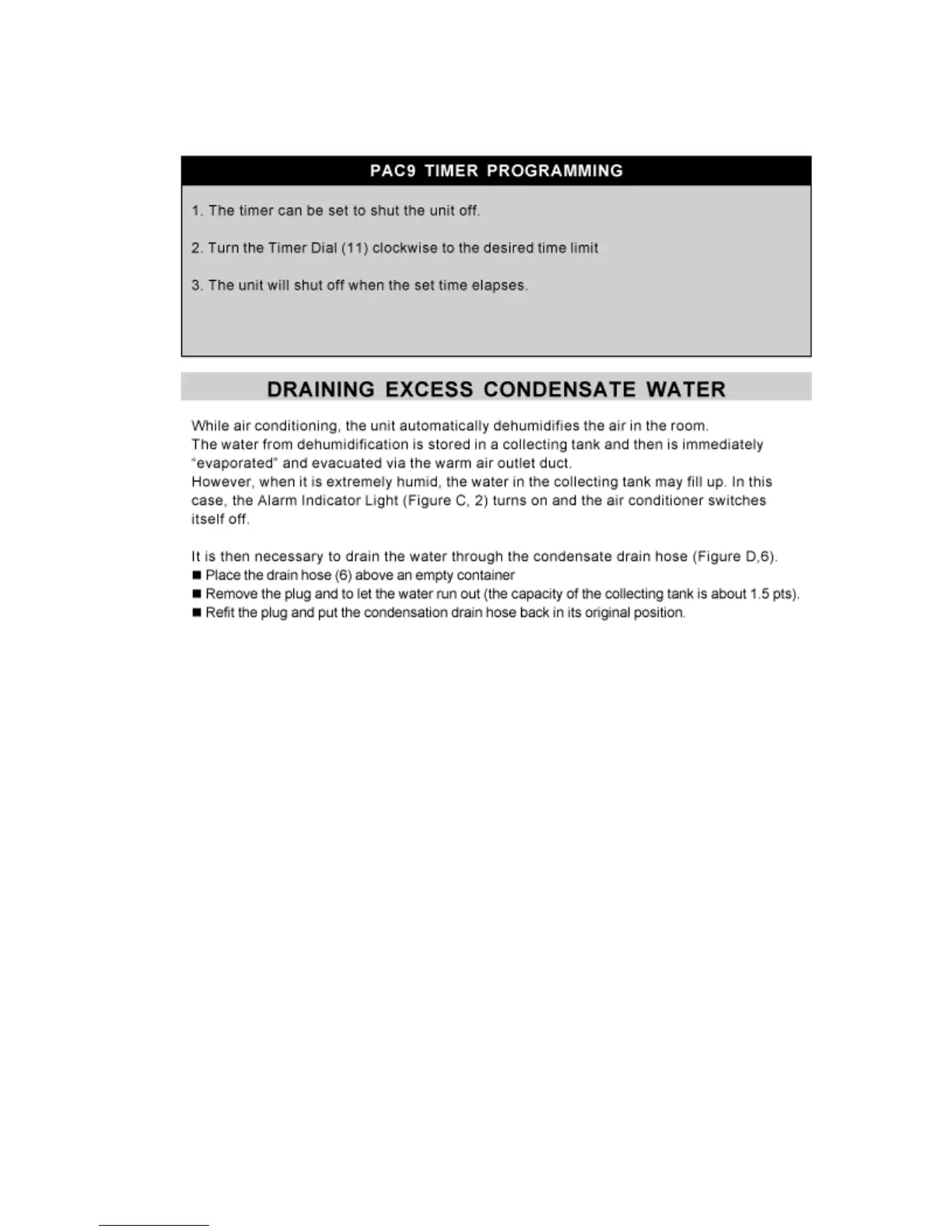 Windchaser PAC9 - TIMER PROGRAMMING; DRAINING EXCESS CONDENSATE WATER