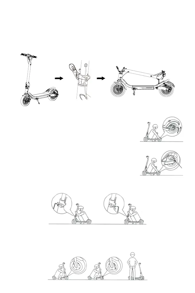 1. S’assurer que la trottinette électrique est éteinte, ouvrir le verrou du tube vertical