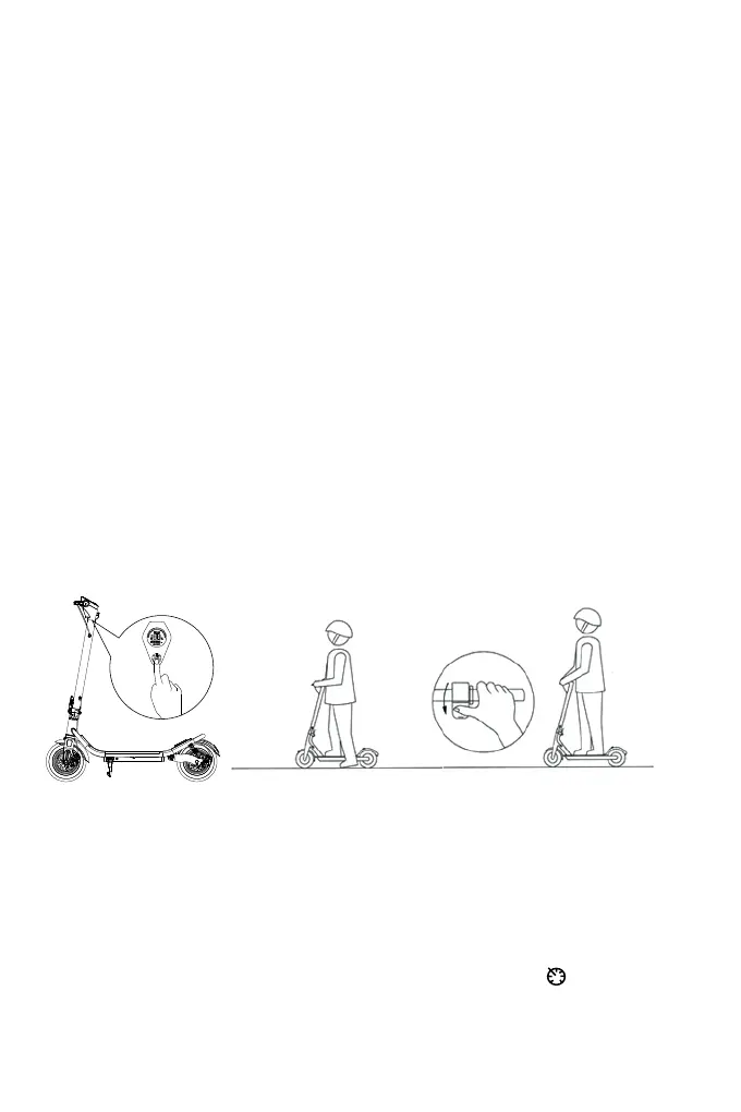 5. To start the scooter, first slide the scooter with your foot 1-2 meters, then press the