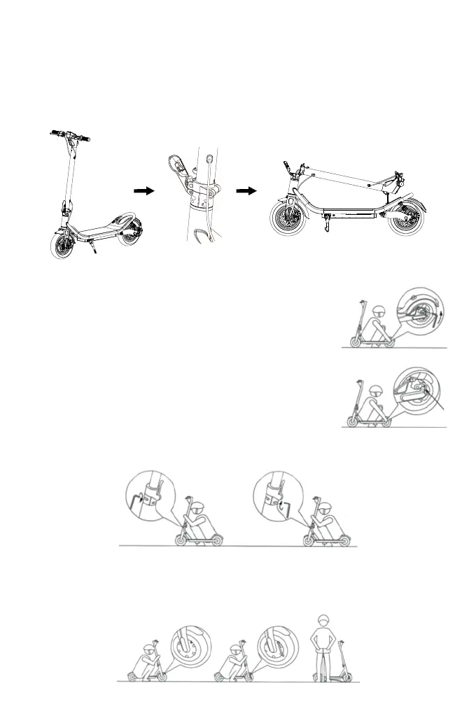 1. Make sure that the electric scooter is turned off, open the folding lock.
