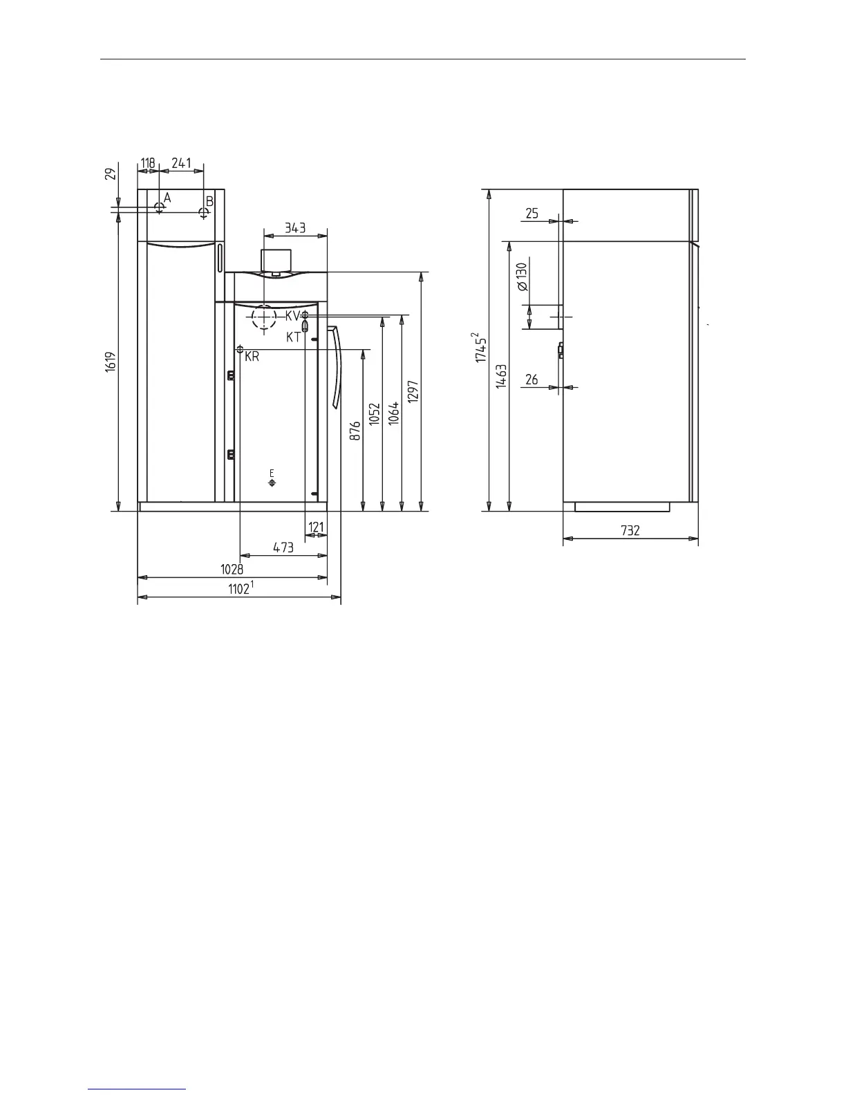 Fig. 37 BioWIN pellet boiler 100–260 – Side view