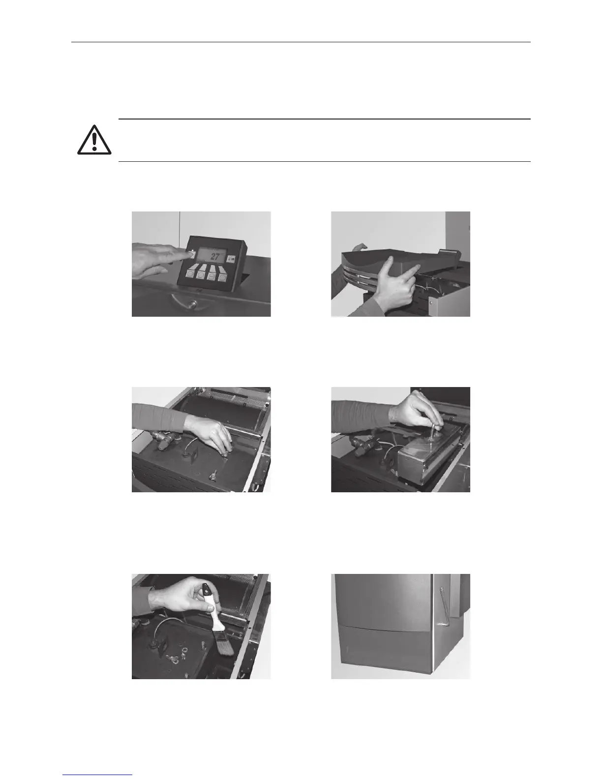 – Vacuum down the top heating surfaces and linkage or clean with a cleaning brush – Fig. 151.
