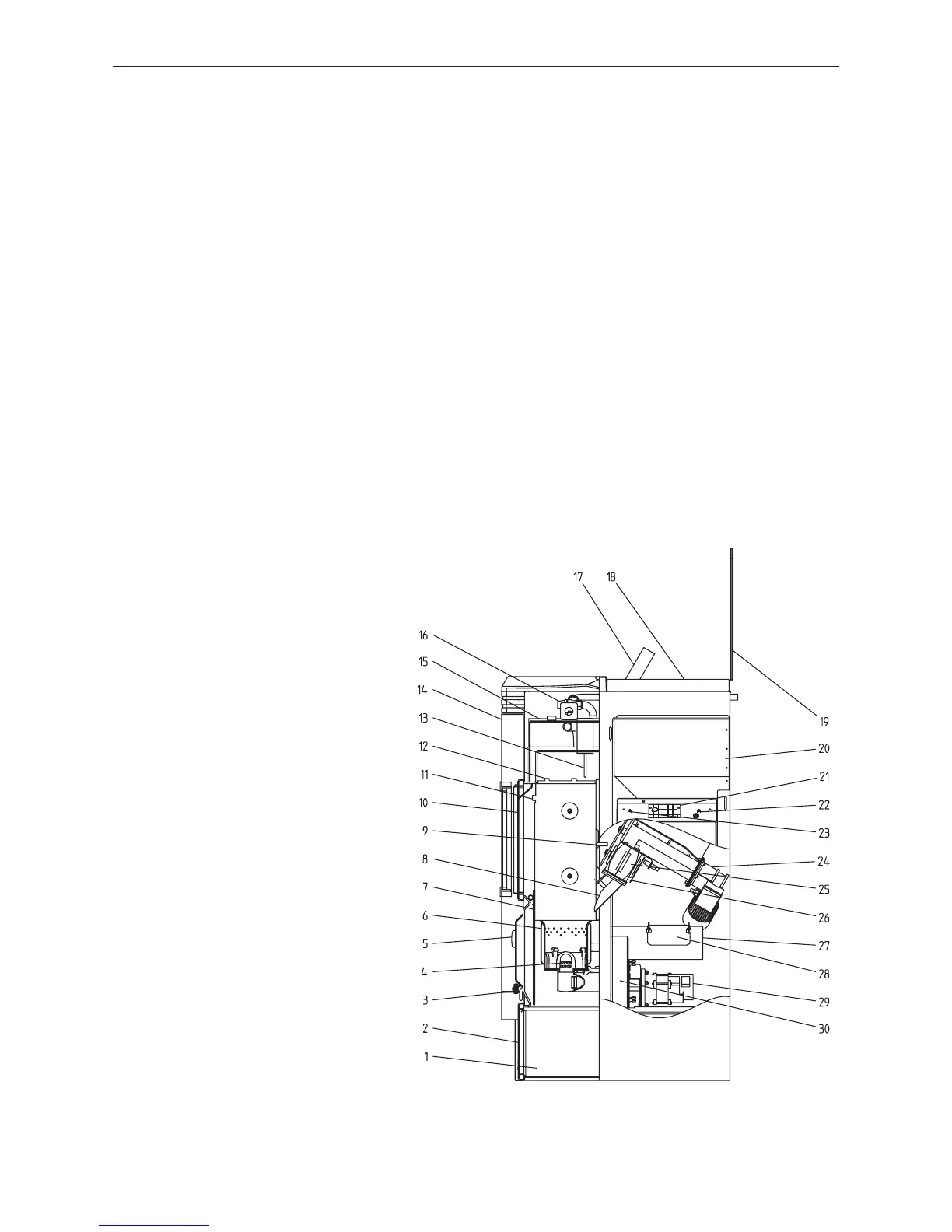 on. The burner pot is automatically filled with pellets. When flame formation has been detected (by the thermo-