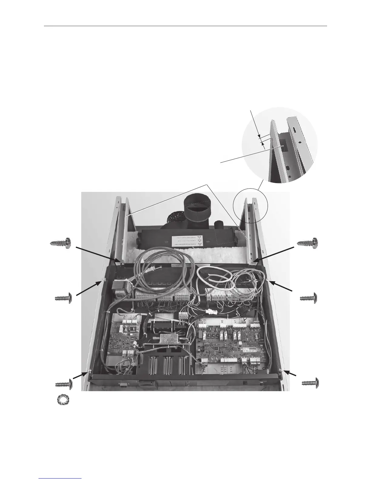 – Place the control panel on the side panels and attach it to each with 2 self-tapping screws and 1 saw tooth ring