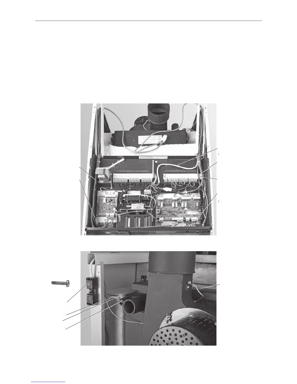 – Route both cables for the flue gas blower in the cable channel stoward the back – Fig. 34.