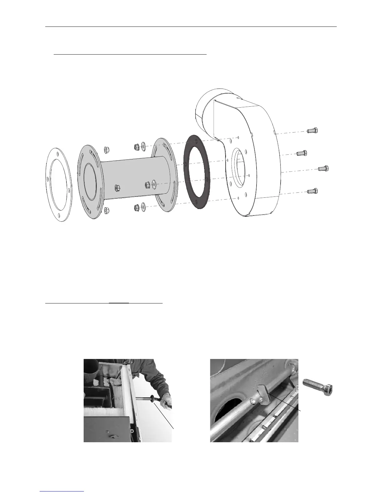 – First screw the 4 included M8x16 hexagon screws into the blower housing from the inside, the attach the
