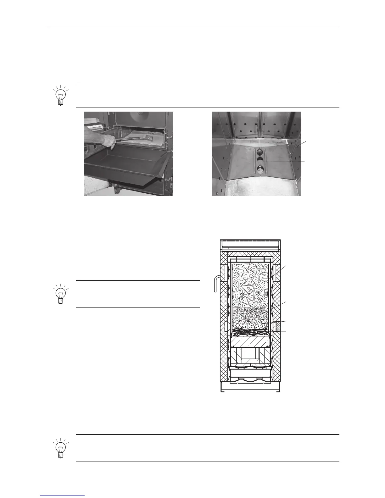 After heating up, do not open the filling door except in order to replenish fuel. This ensures the fuel