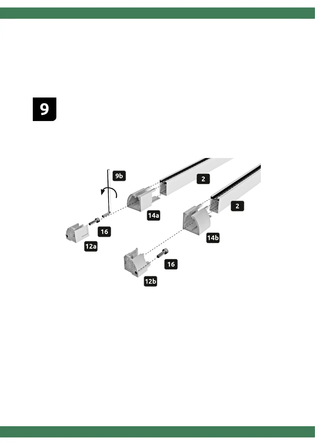 Attach one screw each 16 through the hexagonal socket 9b in the intended middle recess of the end