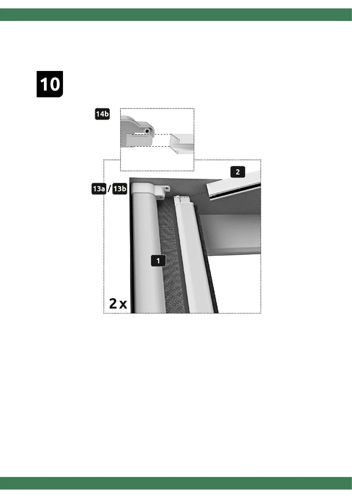 Attach the guide rails 2 via the end caps 13a and 13b with the roller blind cartridge 1.