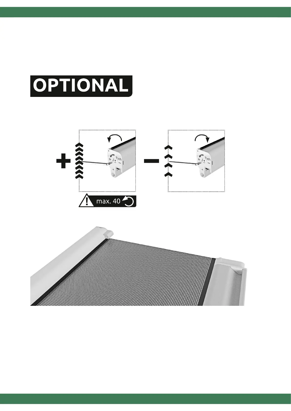 The roller blind is preloaded. You can adjust the tension on the blind, if necessary. Take note of the