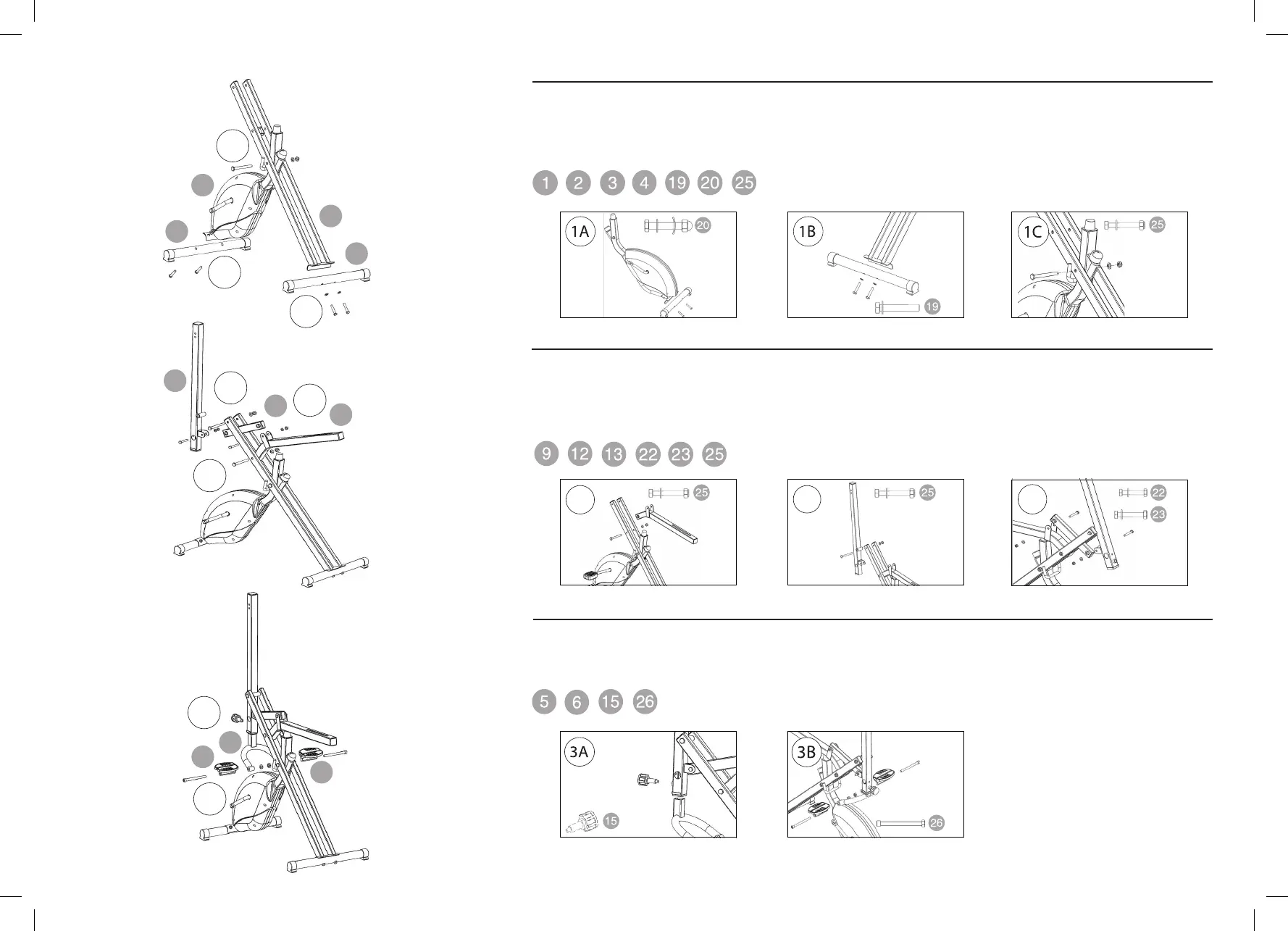 - Attach foot tube pedals (6) to the foot tube (3B), using the screw 26 (2 pcs.).