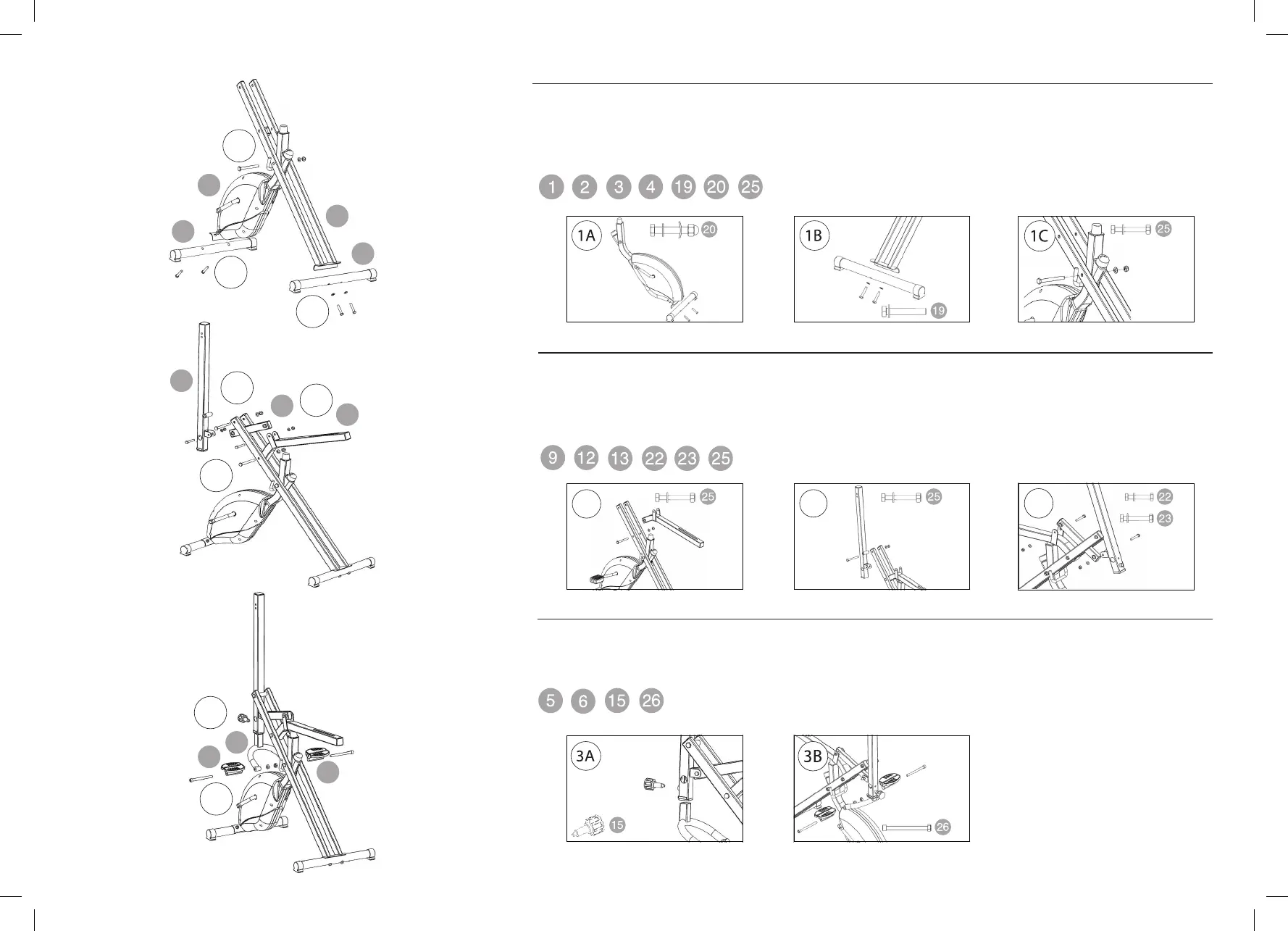 - Monte los pedales crunch (6) al tubo de pedal crunch (3B) con el tornillo 26 (2 uds.).