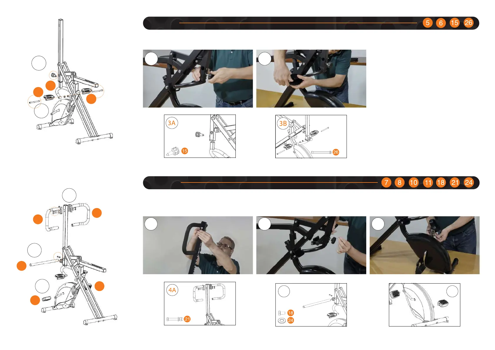 - Monte los pedales crunch (6) al tubo de pedal crunch (3B) con el tornillo 26 (2 uds.).