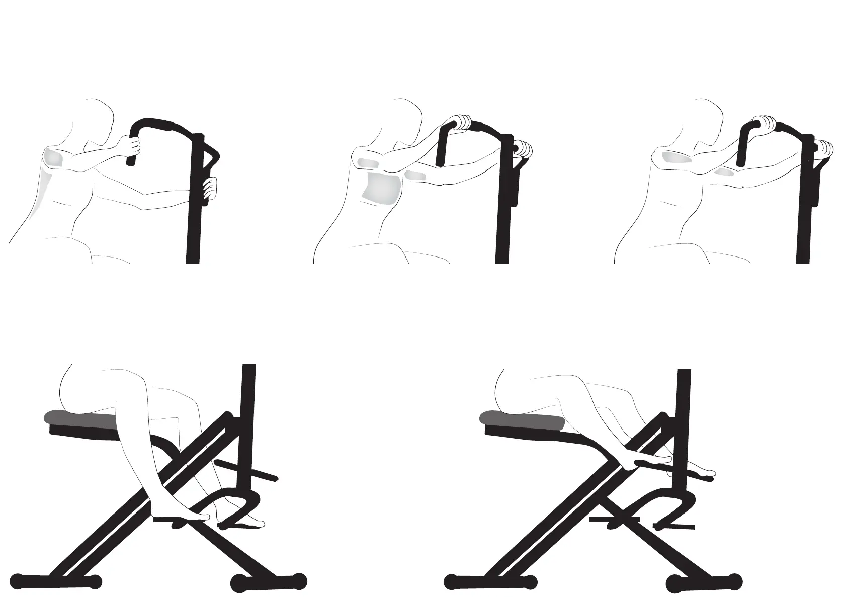 Bewegungen 12 Mal für jede der verschiedenen Handpositionen an der Griffstange.