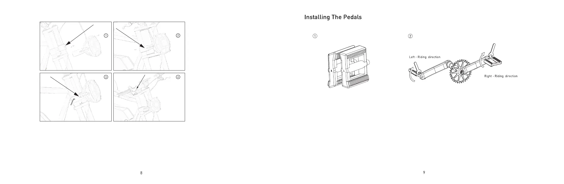 2. "L" stands for the Left pedal of the riding direction; "R" is for the Right pedal of the riding direction, the chain side.
