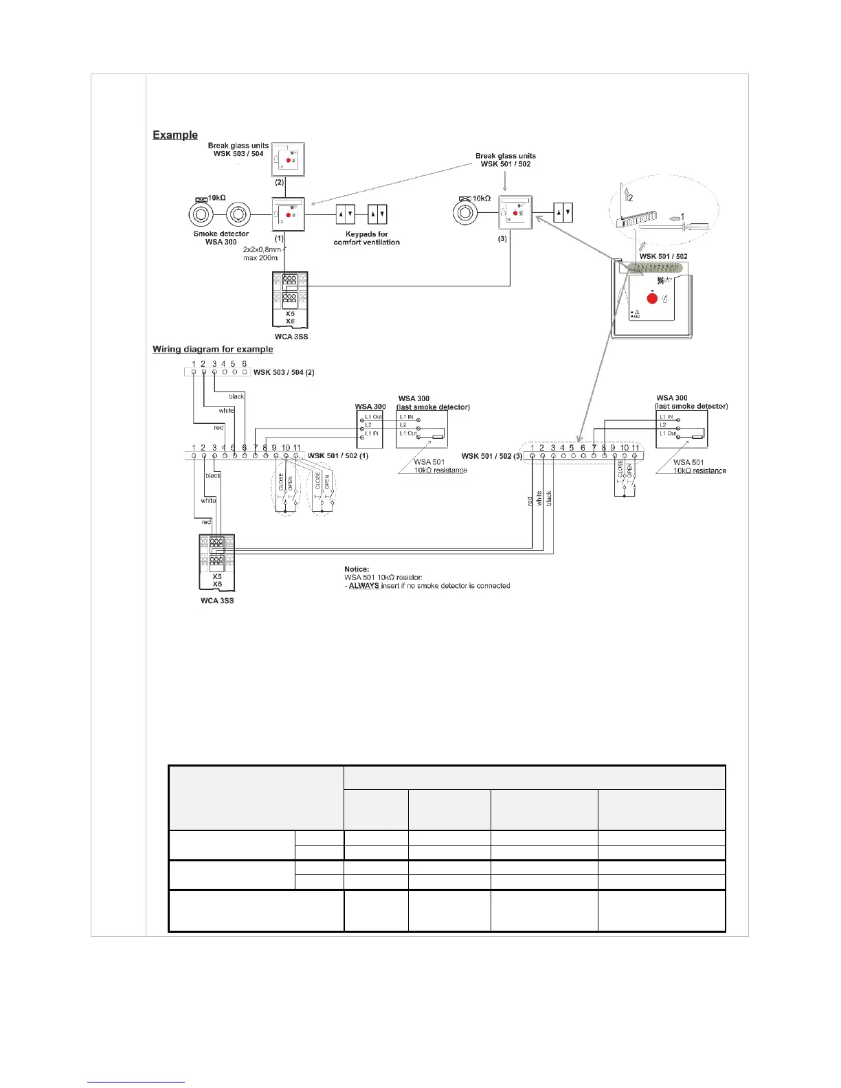 type WSK 503 / 504, 3 smoke detectors WSA 300, 2 resistances WSA 501 and 3 comfort keypads.
