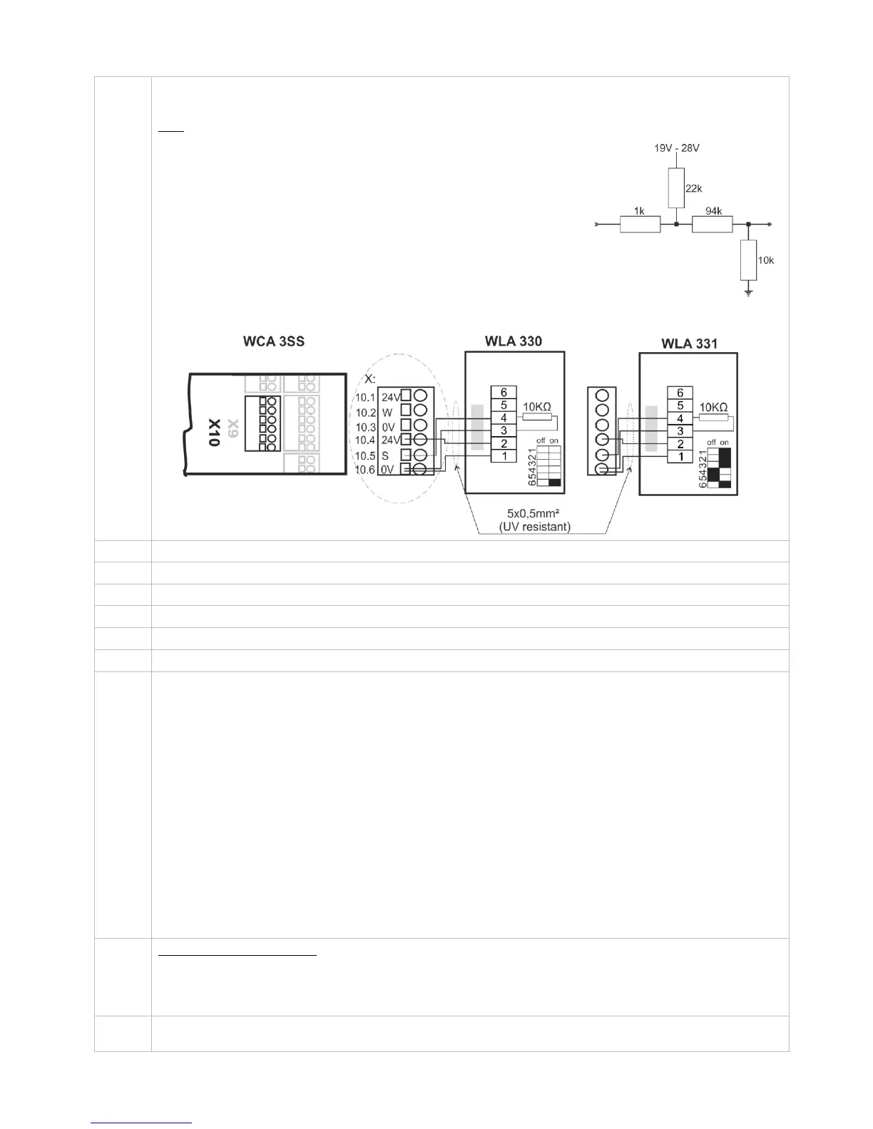 Connection of wind / rain sensors type WLA 330 or rain sensor WLA 331.