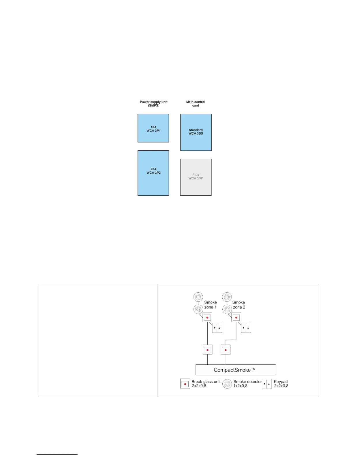 Break glass unit type WSK 50x are to be used together with WSC 310/320. The number of smoke zones is determined by the