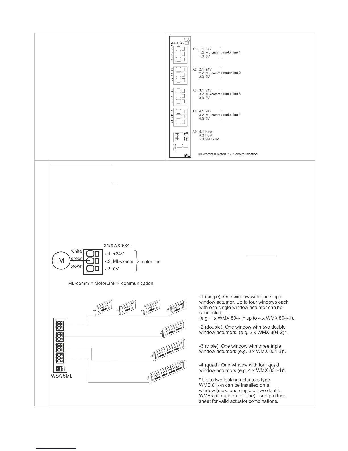 The WSA 5ML module has four motor lines (X1, X2, X3 and X4) for connection of motors with MotorLink