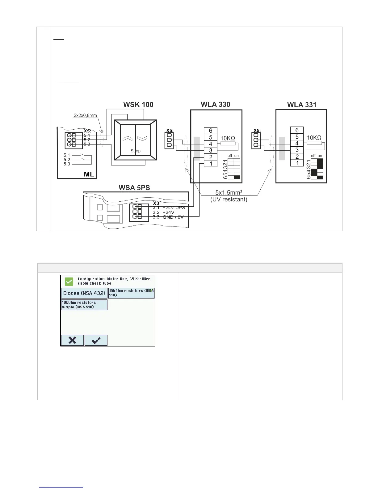 Note: short circuit between +24V (x.1) and monitoring wire (x.2 ML-