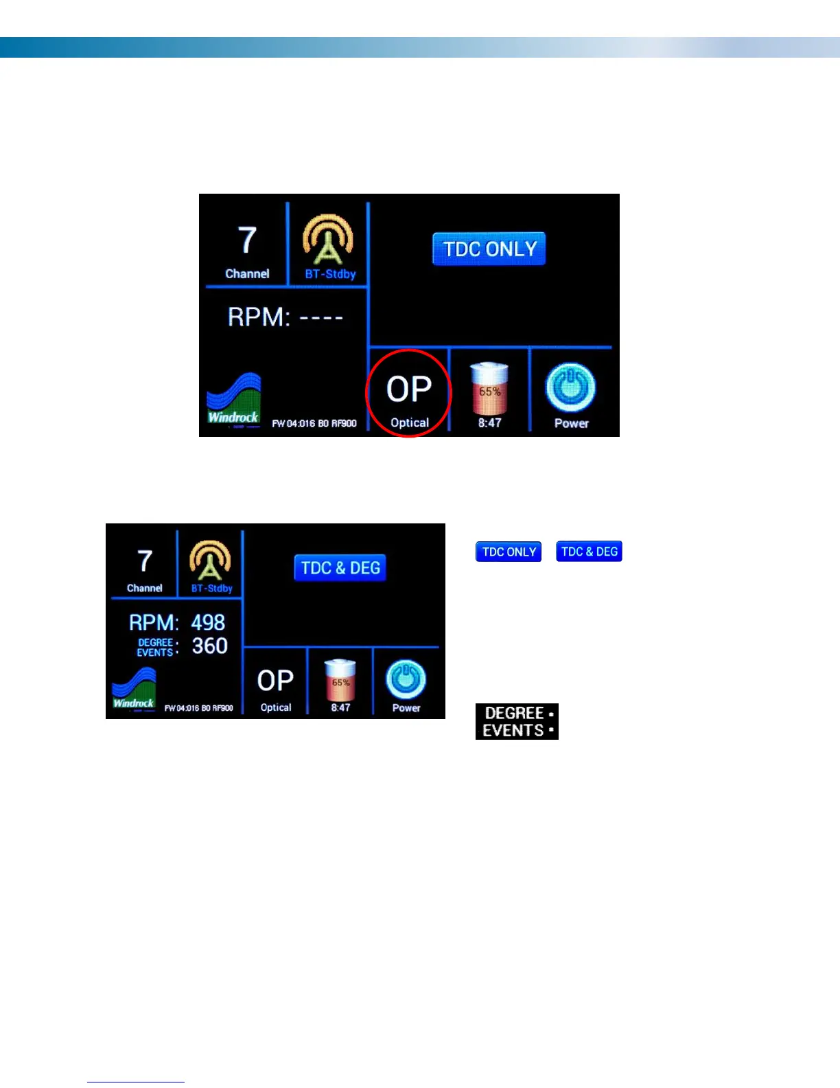 Optical Pickup (OP) - This function uses an optical pickup that is plugged into the TDC port and it is triggered