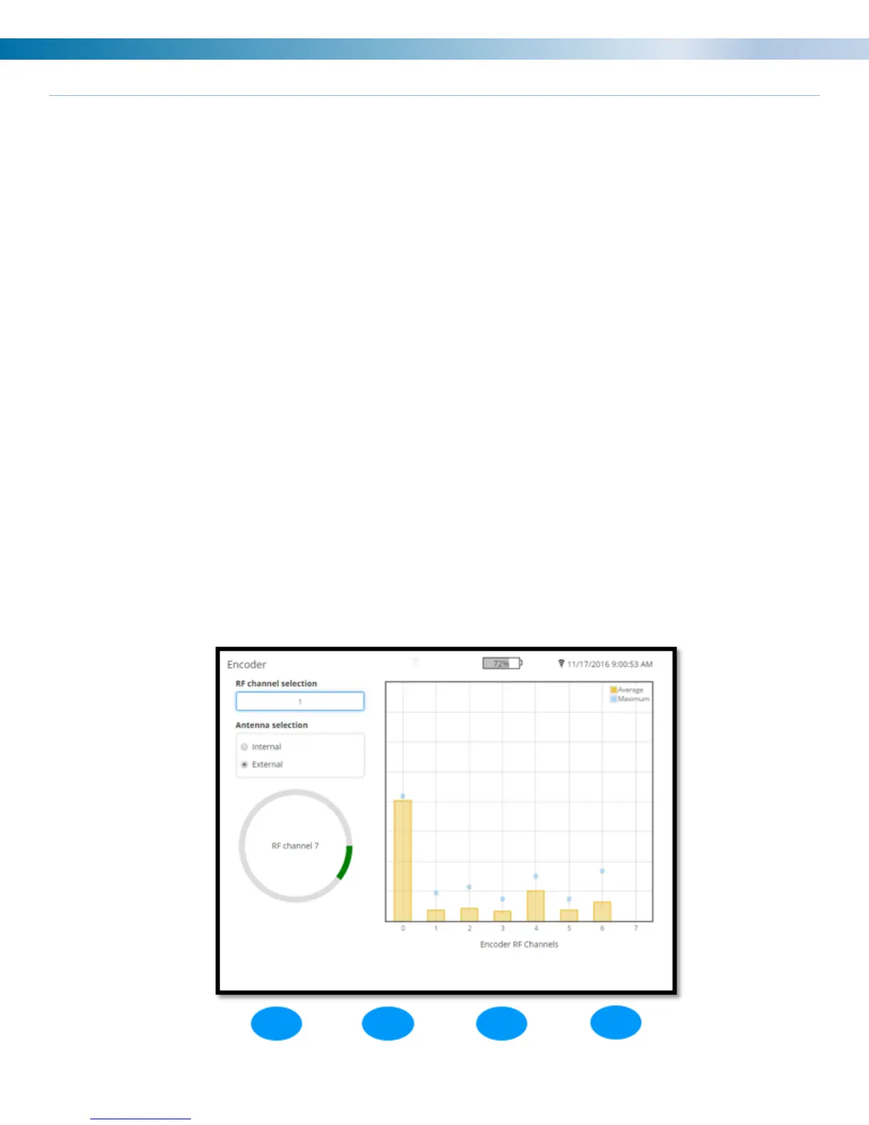 2) The analyzer will begin scanning all 8 available RF channels. Let the analyzer perform a complete scan