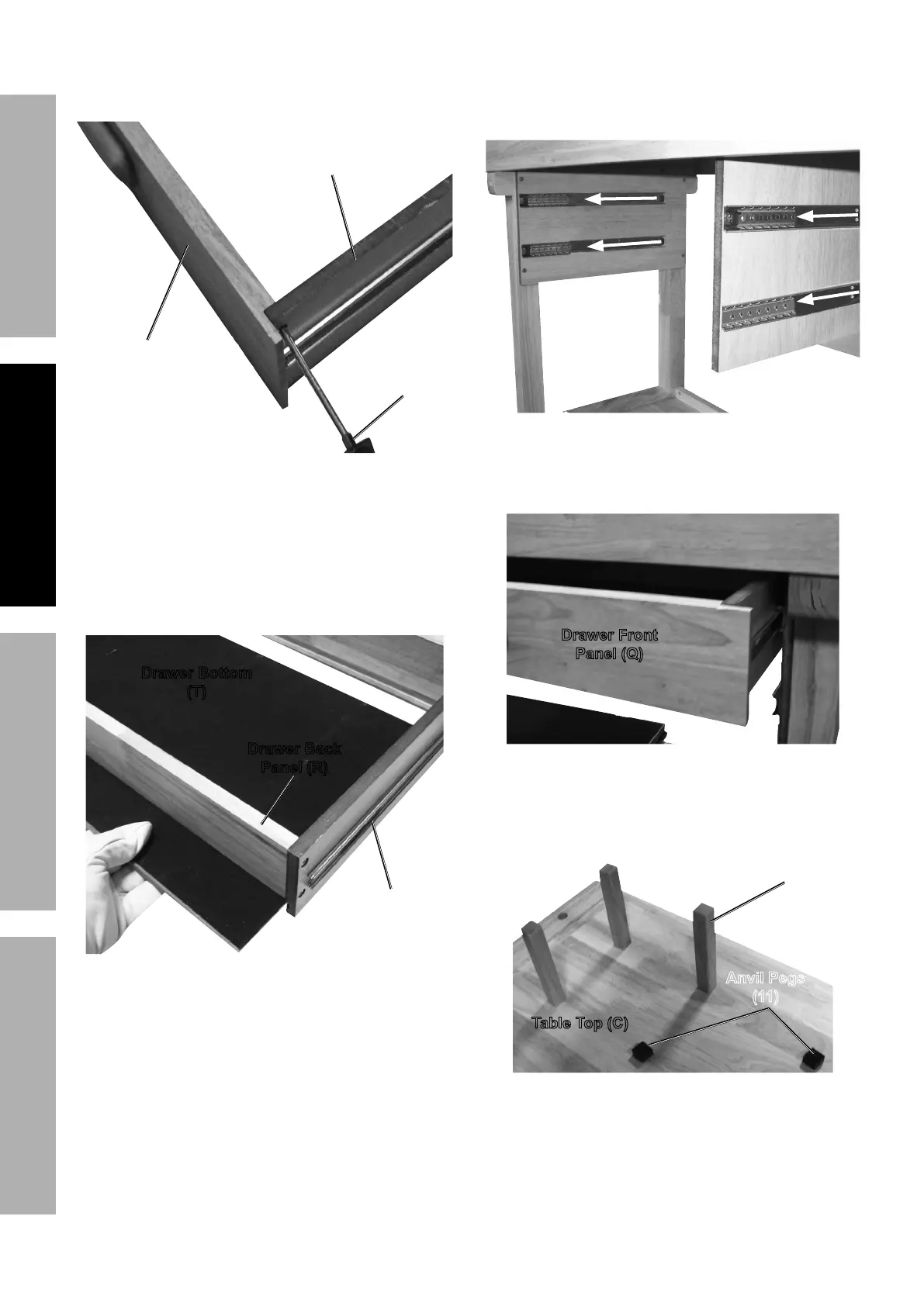 19. With the felt side up, slide a Drawer Bottom (T) into