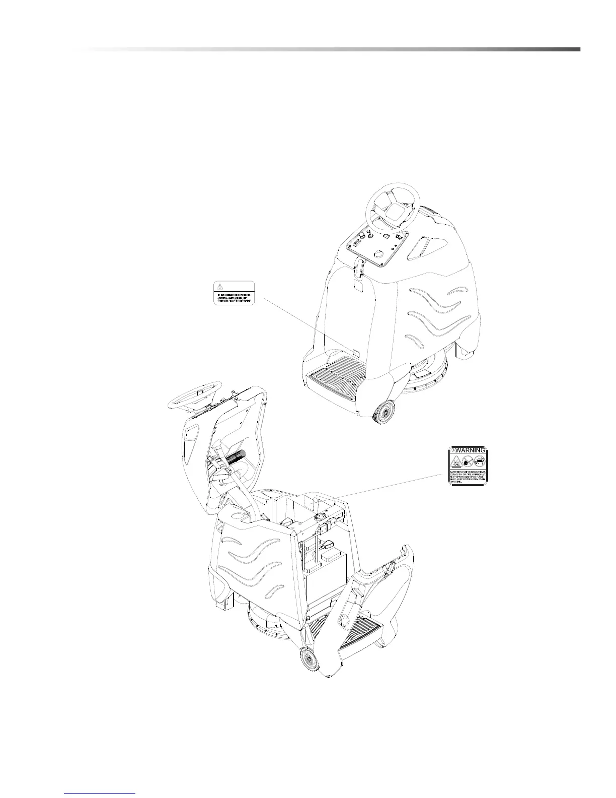 These drawings indicate the location of safety labels on the machine. If at any time the labels become illegible,