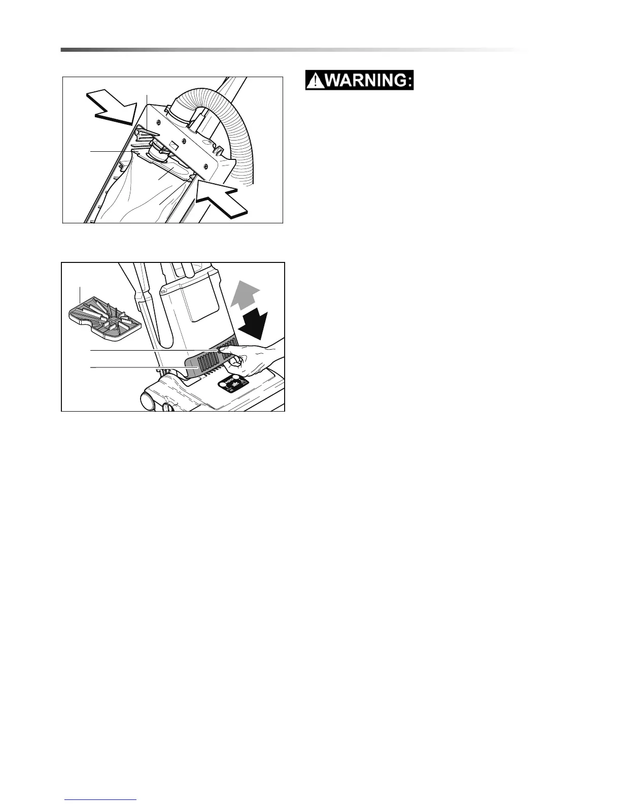 down lever (20). Lower dust bag from connecting