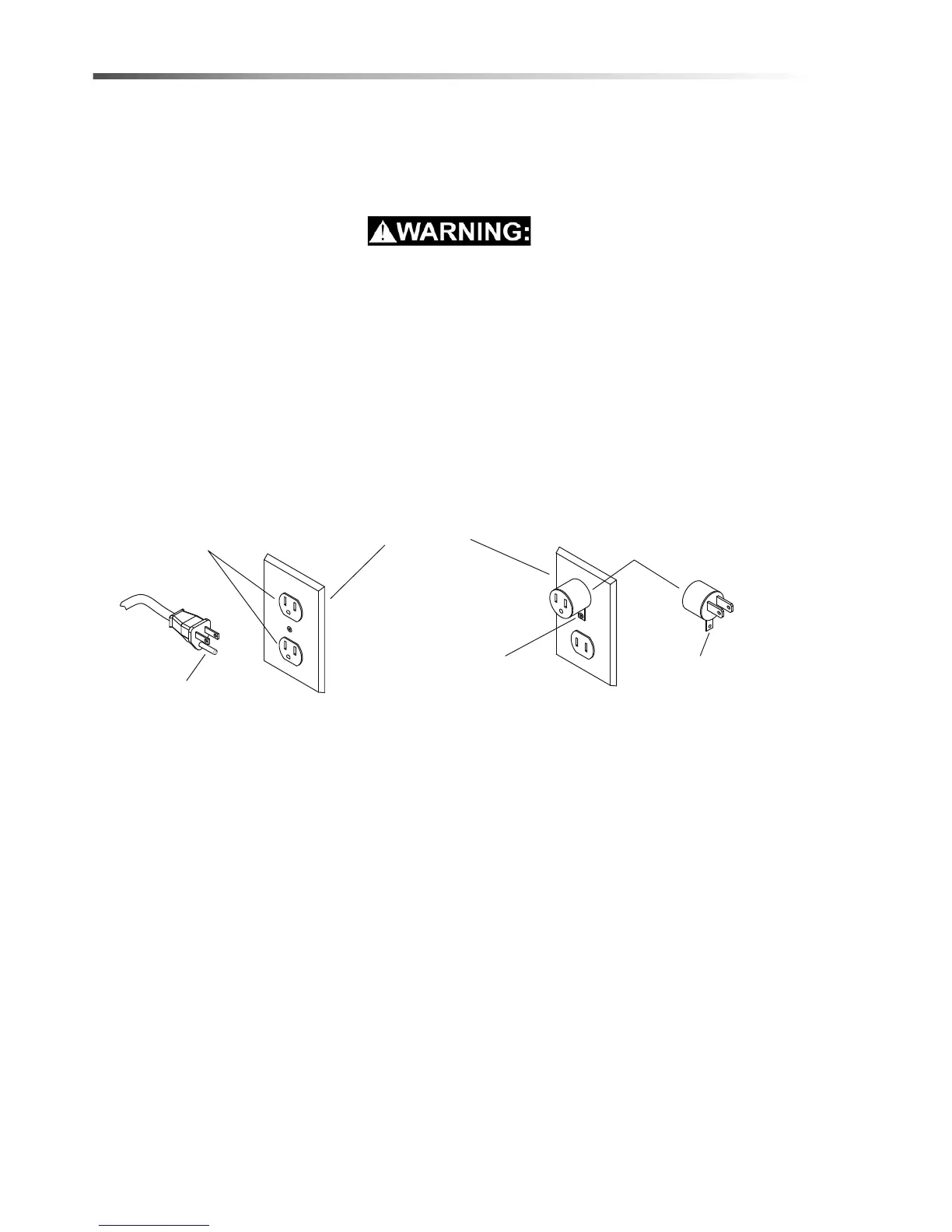 permanent ground such as a properly grounded outlet box cover. Whenever the adaptor is used, it must be held