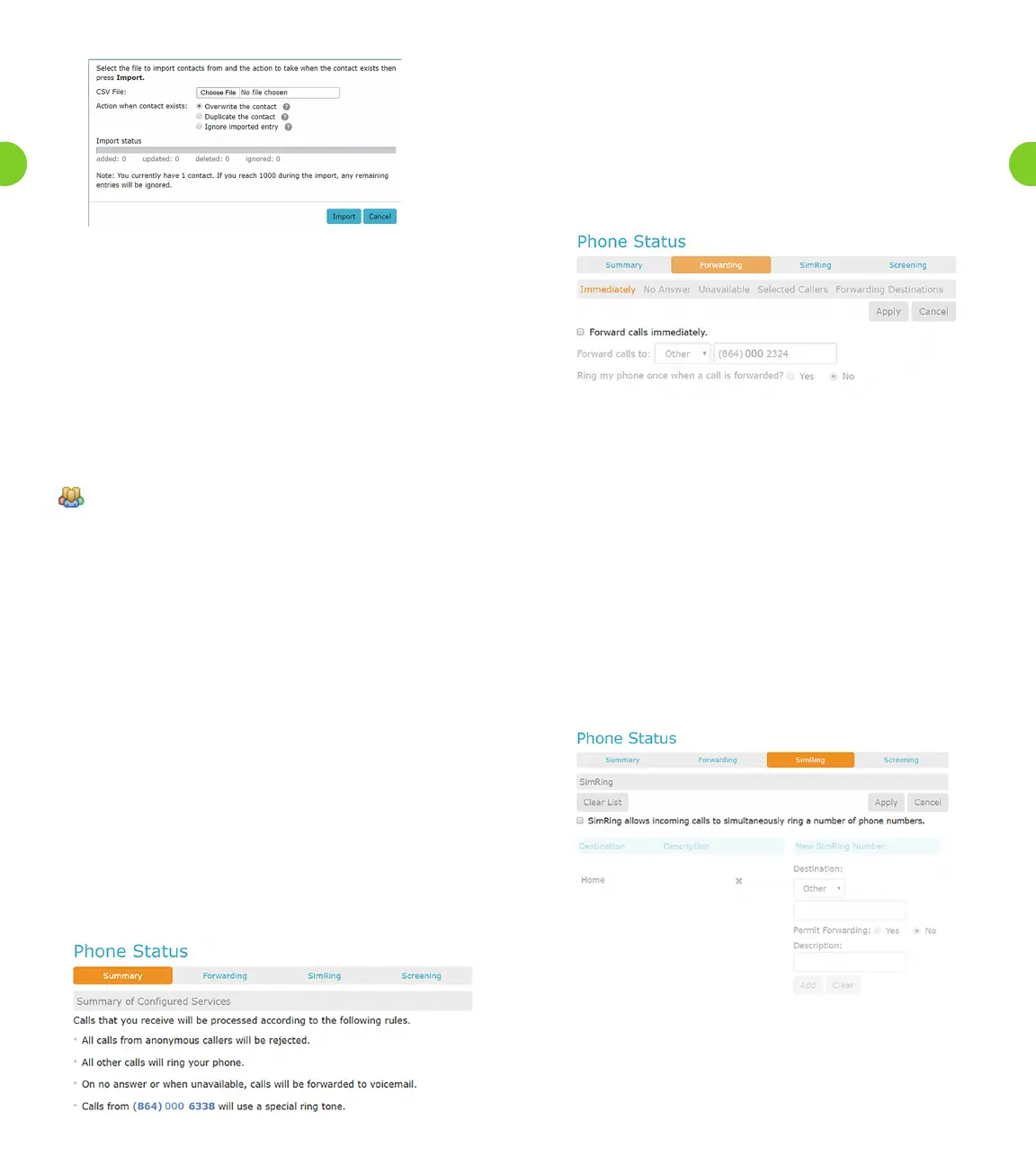 Figure 12. Shows the SimRing tabs, where you can allow calls to