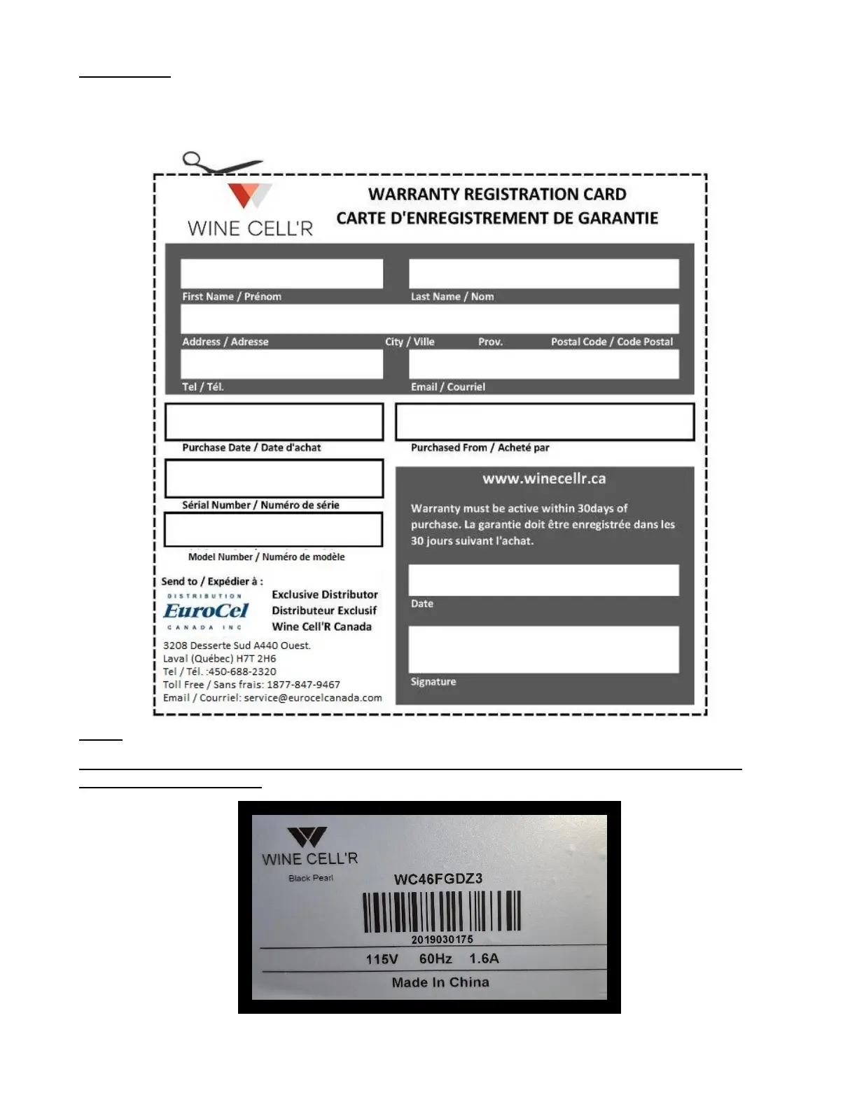 Thank you for purchasing a Wine Cell'R quality appliance. We advise you to activate your