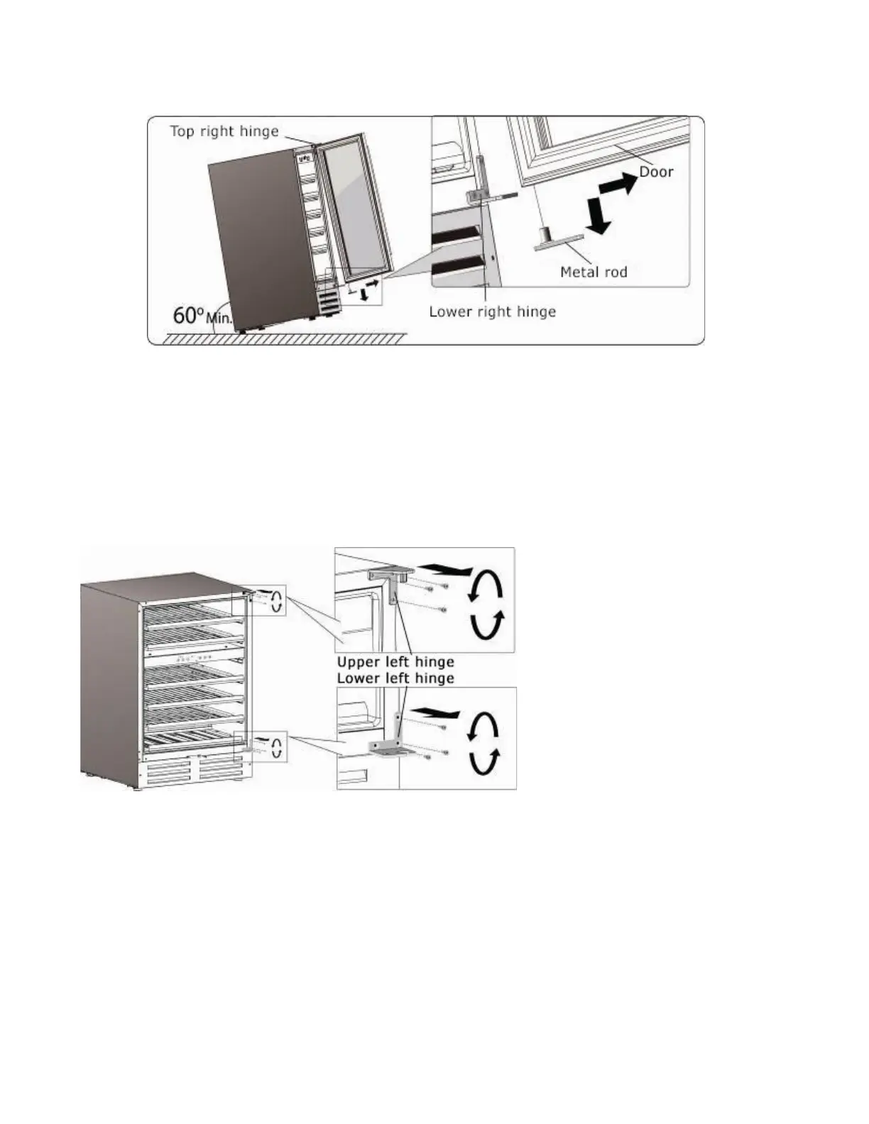 (locking hole) of the door and insert it into the lower center hole, rotate the door 180