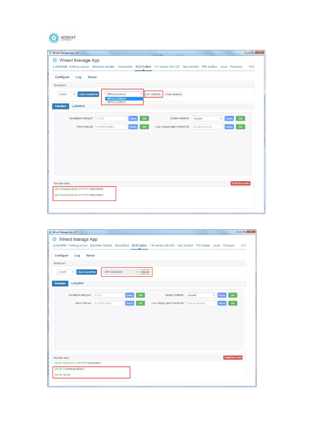 After the device locked successfully, it will show OK in the Receive Date window, as below: