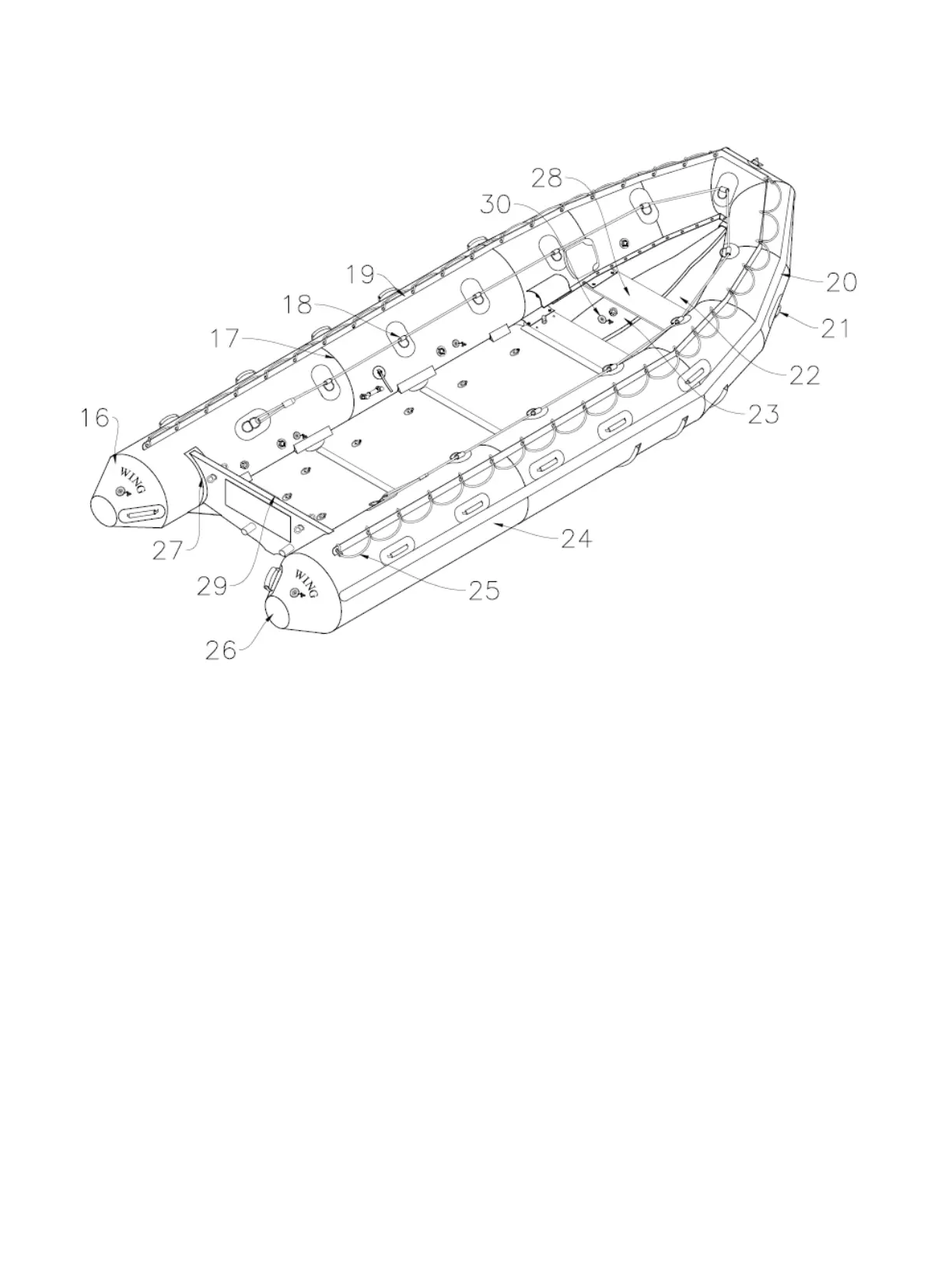 23. Keel – Inflatable tube running fore and aft giving form to fabric hull