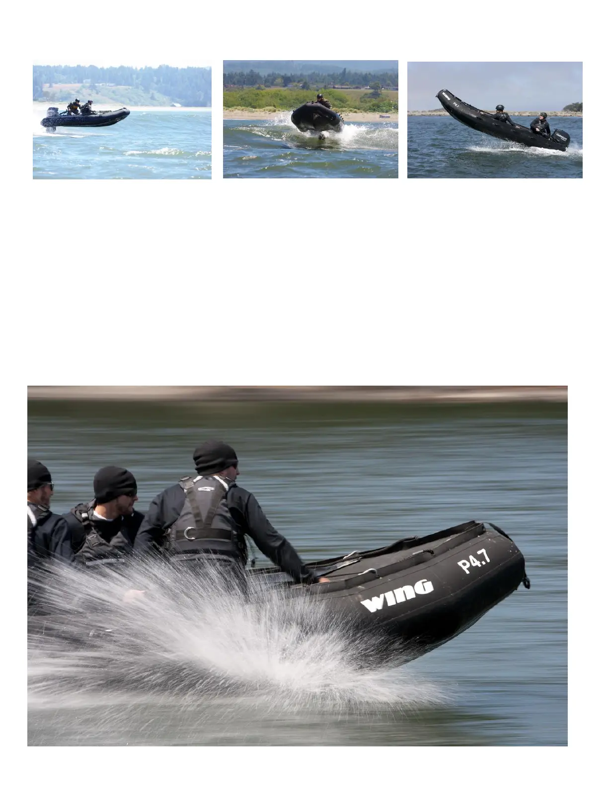The Wing P4.2, P4.7, P5.3 and P5.8 CRRCs are the ideal inflatable boats for missions in which rapid deployment, high